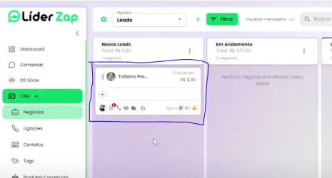 ✅ O card do lead será criado no CRM e você poderá gerenciá-lo normalmente.